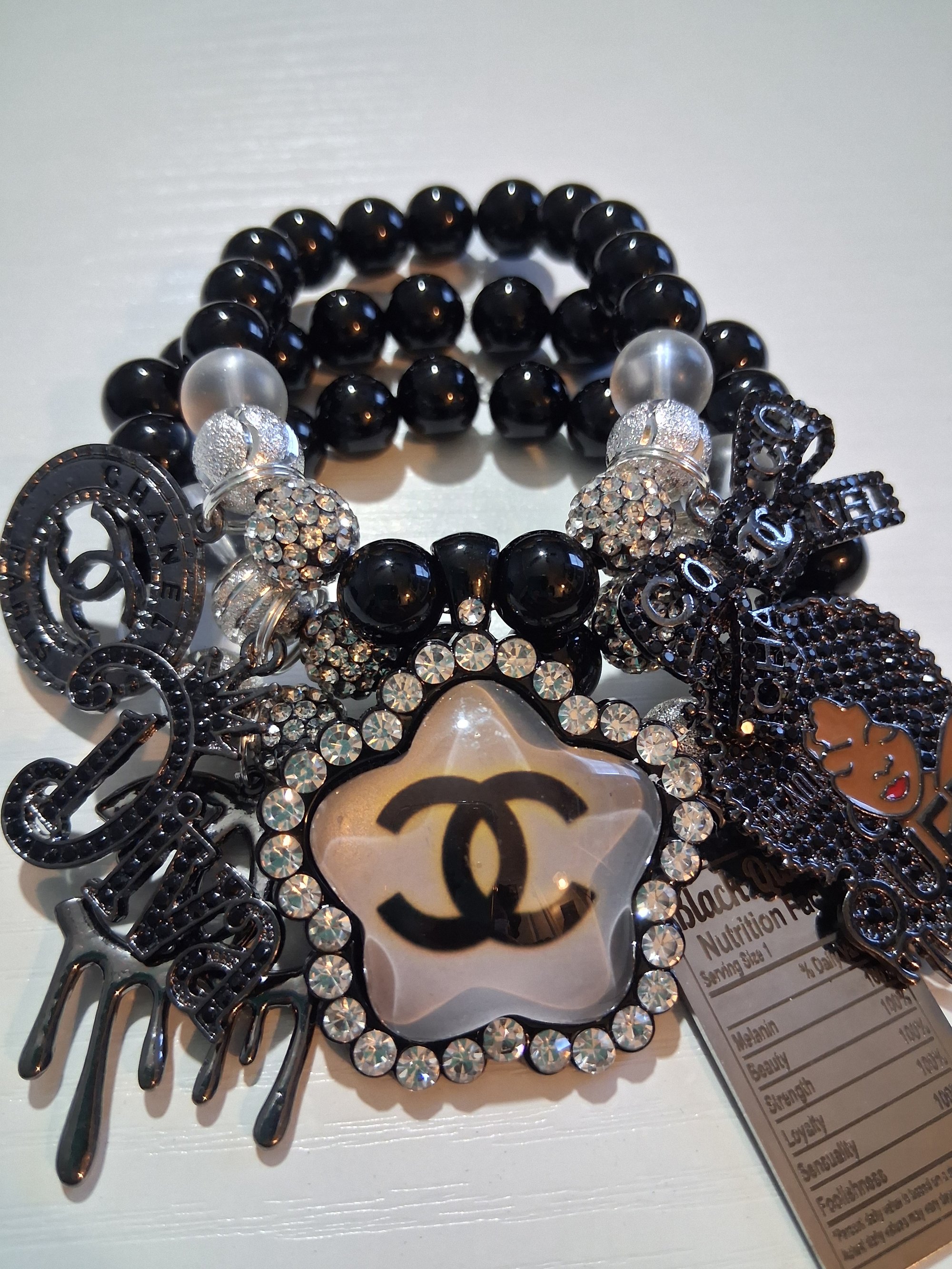 Three piece bracelet set with charms on 10mm beads